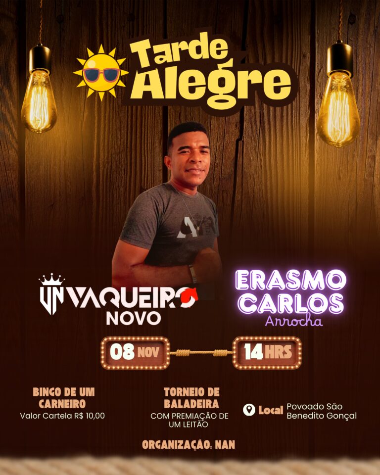 Vaqueiro Novo e Erasmo Carlos agitarão este sábado, 8 de novembro, uma animada tarde alegre no Povoado São Benedito do Gonçal, município de Timbiras.