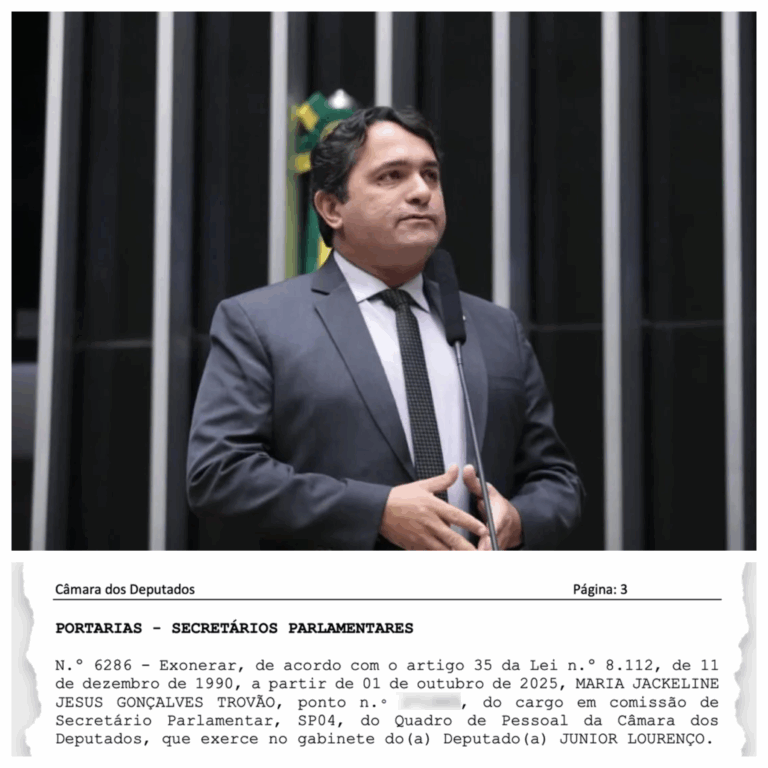 O deputado federal Júnior Lourenço (PL-MA) exonerou, em 1º de outubro, a secretária parlamentar Maria Jackeline Jesus Gonçalves Trovão, sua sogra, após a divulgação de uma denúncia de nepotismo. A demissão ocorreu cerca de duas semanas após o caso vir a público, em reportagem do Metrópoles.