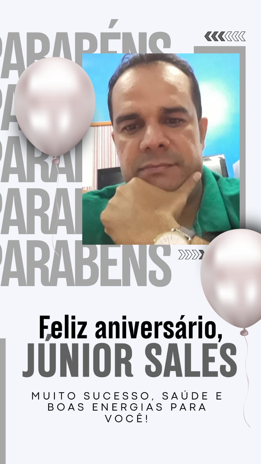 Júnior, que tu sigas com muita saúde, mais sucesso e que tua vida seja longa para curtir tuas conquistas. Que teu novo ciclo seja ainda mais porreta. Parabéns pelo teu dia, velho e querido amigo. Feliz aniversário!. Mais tarde apareço para a festa (risos).