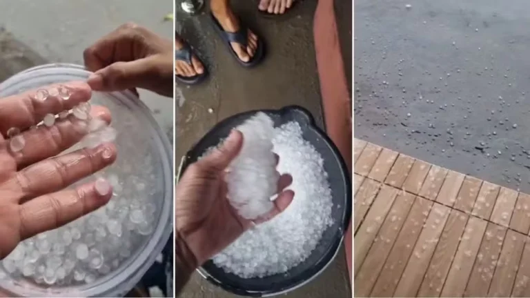Moradores de Riachão, no Sul do Maranhão, fizeram registro em fotos e vídeos de uma chuva durante a tarde de sábado (11). Um temporal acabou ocasionando a queda de pedras de gelo causando espanto para a população da região.