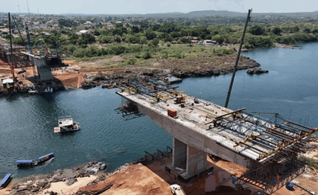 A construção utiliza o método de balanço sucessivo, empregado em pontes de grande vão quando não há condições de escoramento no leito do rio. Segundo o Departamento Nacional de Infraestrutura de Transportes (DNIT), as 24 fundações e 26 pilares estão concluídos. Das 60 aduelas previstas, 20 foram concretadas, e cinco das nove lajes do tabuleiro estão prontas.