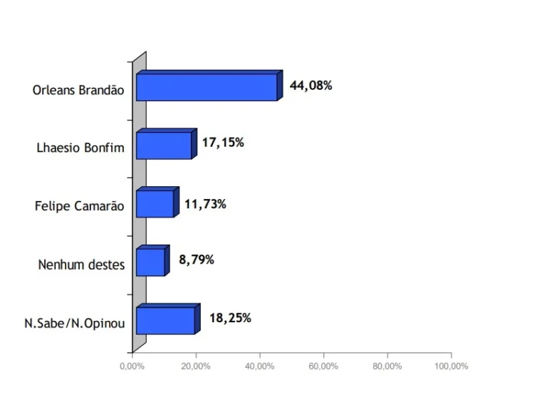 Simulando um cenário em que não esteja na disputa Eduardo Braide, os números são esses: Orleans Brandão com 44,08% sendo seguido por Lahésio Bonfim com 17,15% e Felipe Camarão com 11,73%.
