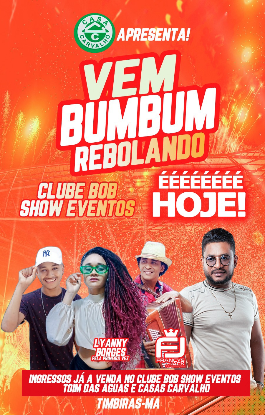 Ingressos já estão à venda no Bob Show, Toin das águas e Casas Carvalho.