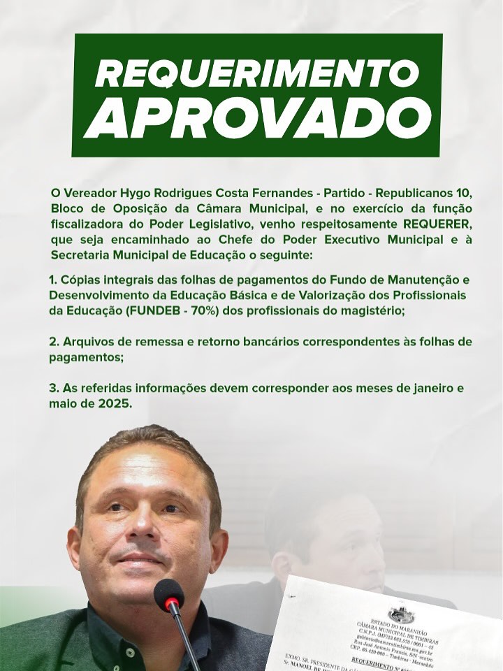 Na noite da última segunda-feira, dia 23 de junho, a Câmara Municipal de Timbiras reuniu-se em mais uma sessão ordinária para deliberar sobre diversos assuntos de interesse público. Entre os principais temas em pauta estavam os requerimentos apresentados pelo vereador Hygo Contador, que foram amplamente debatidos e votados.