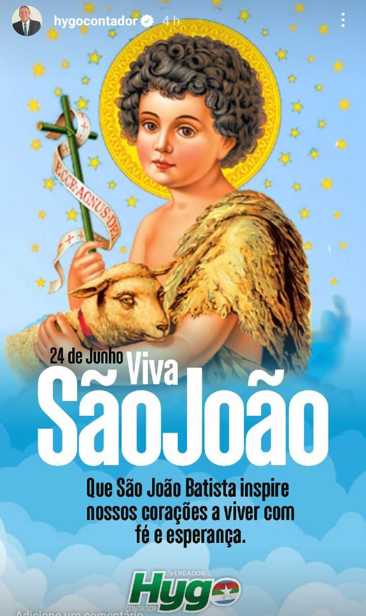 “Que São João Batista inspire nossos corações a viver com fé e esperança”, Vereador Hygo Contador.