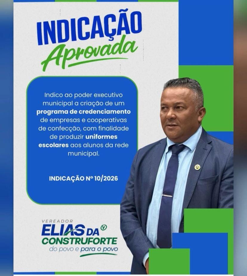 Entre os destaques, está a Indicação nº 10/2026, de autoria do vereador Elias da Construforte, que solicita o credenciamento de empresas e cooperativas de confecção para a produção dos uniformes escolares da rede municipal de ensino. A proposta busca valorizar a mão de obra local, gerar emprego e renda, além de garantir maior agilidade na entrega dos uniformes aos estudantes.