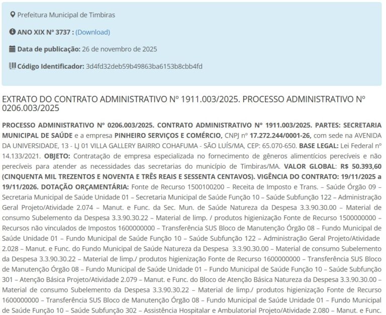 A pergunta que ecoa nos bastidores políticos é inevitável: mesmo sob investigação, como a empresa segue ampliando contratos com o poder público municipal? Enquanto a PF aprofunda a apuração sobre os contratos do passado, os números do presente continuam crescendo — e alimentando o debate político em Timbiras.