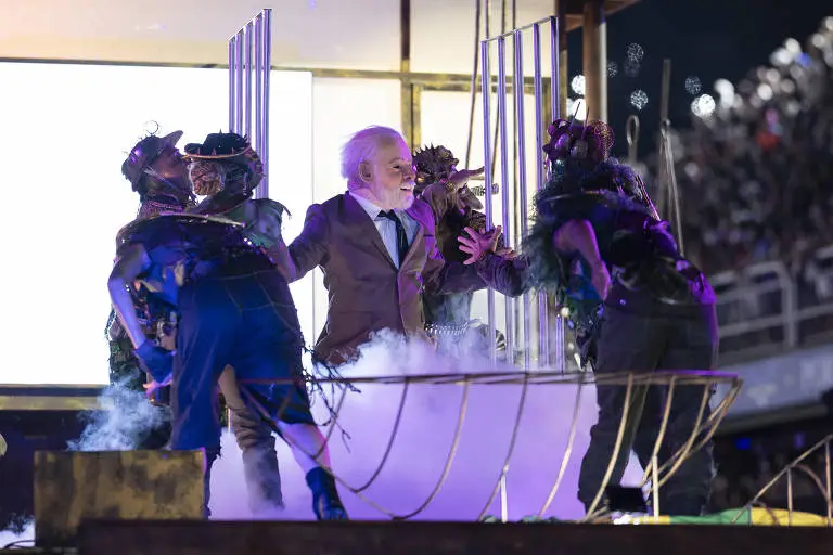 Além de saudar a história do petista, a apresentação também fez críticas ao ex-presidente Jair Bolsonaro (PL), rival de Lula retratado como palhaço Bozo na avenida.