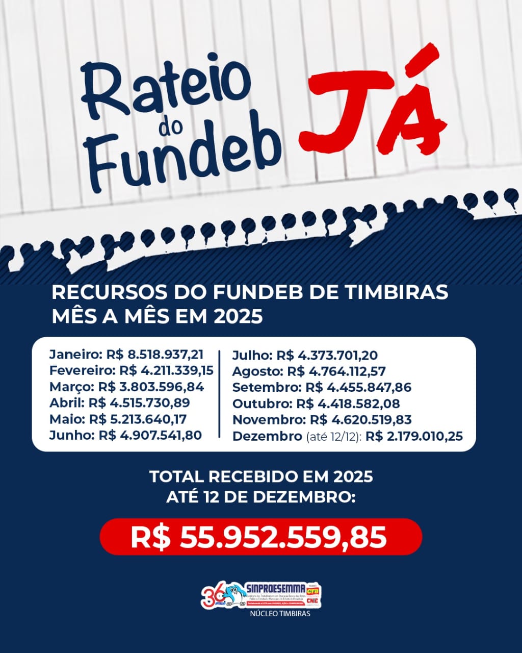 RATEIO DAS SOBRAS DO FUNDEB JÁ!