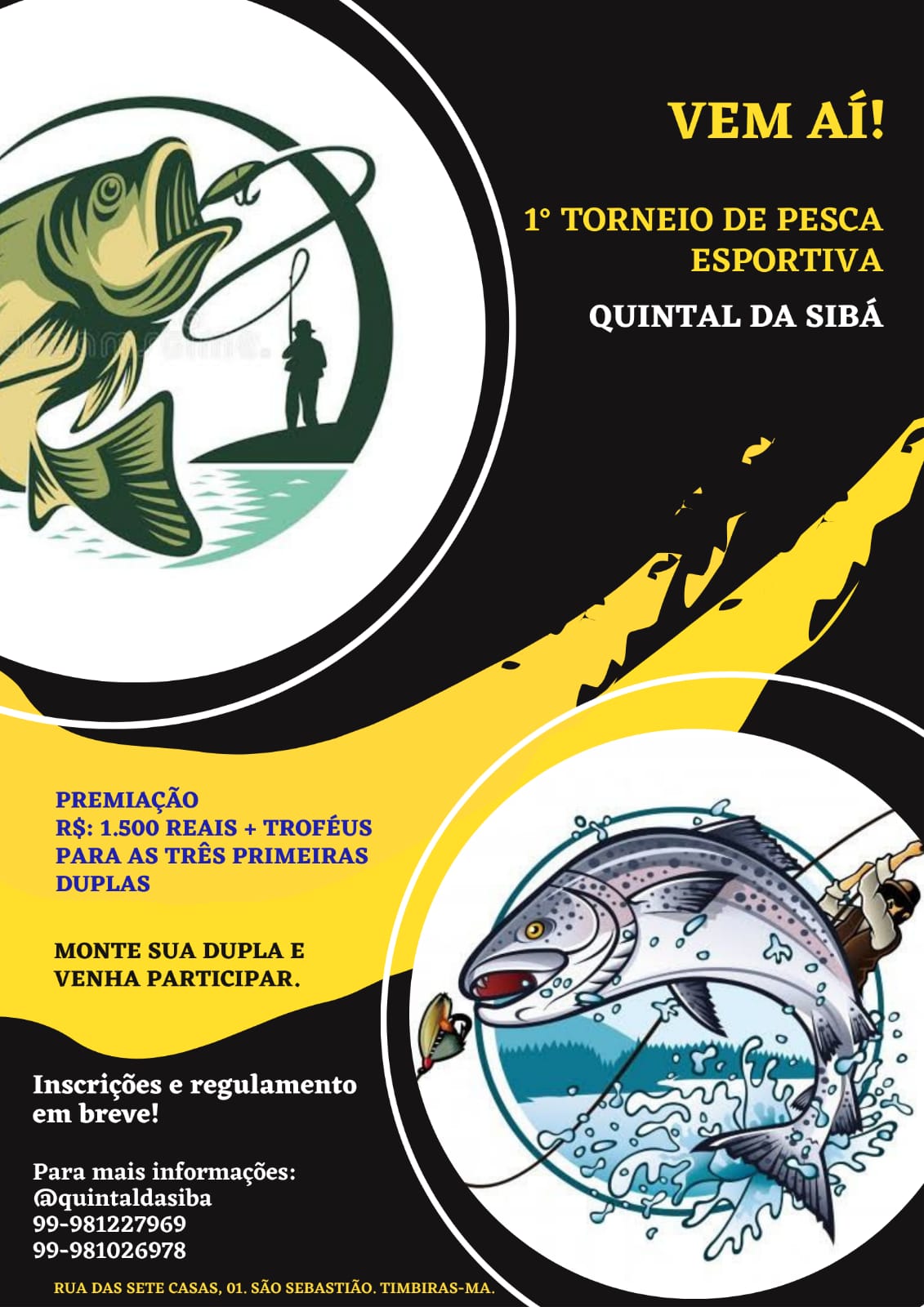 Timbiras será um dos principais destinos de pescadores esportivos, que encontrarão um local ideal para prática. Um cenário deslumbrante que acontecerá o desafio no QUINTAL DA SIBÁ, torneio que vai distribuir 1.500,00 reais em premiação e troféus.