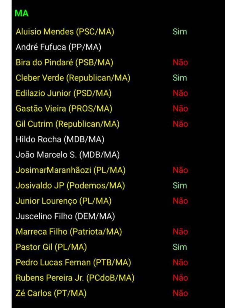 Apenas quatro deputados do Maranhão a favor da PEC do Voto Impresso.